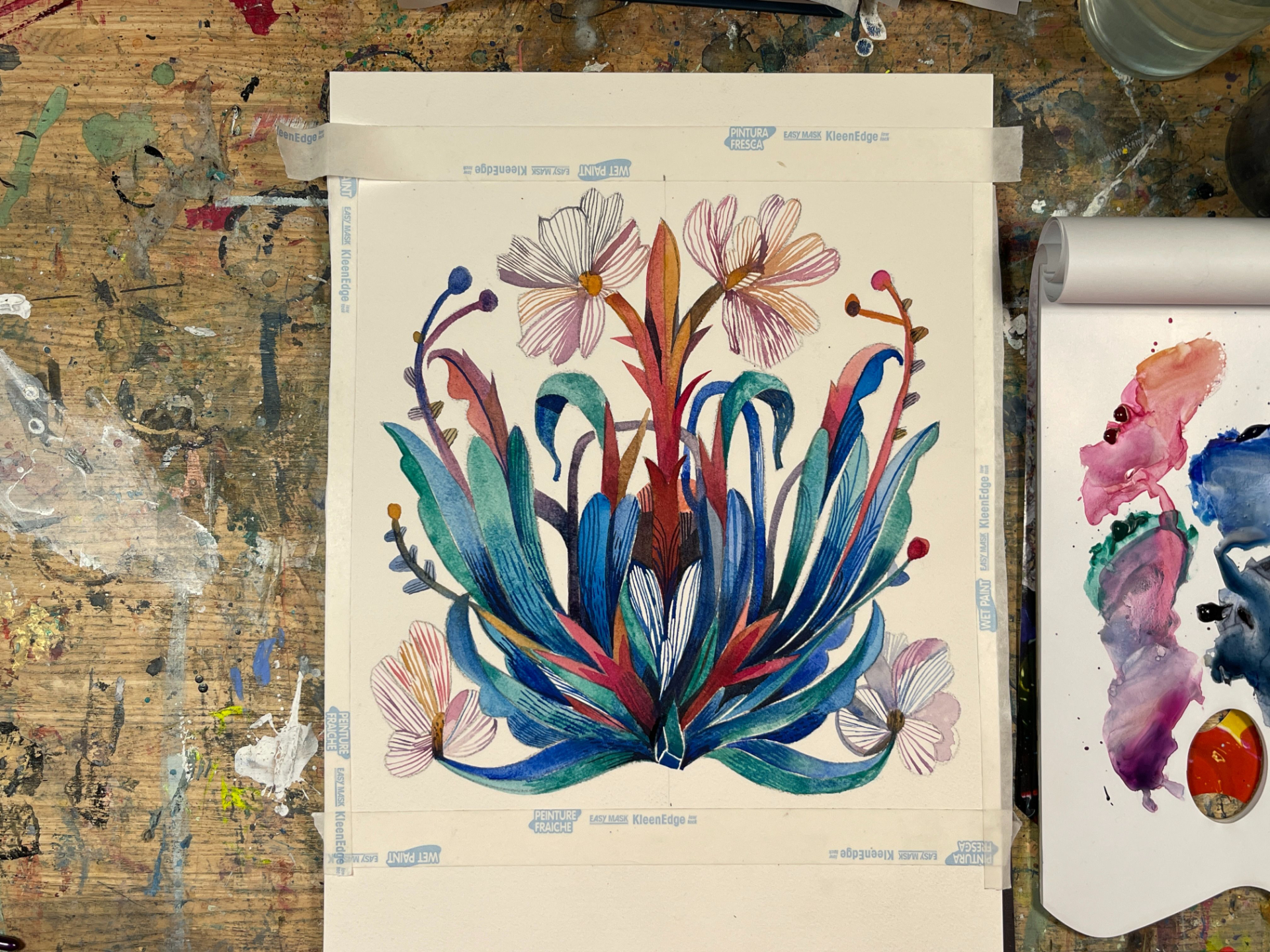 We'll be exploring a multitude of watercolour and gouache techniques together with acrylic inks and other media, all tailored to the specific module's theme.